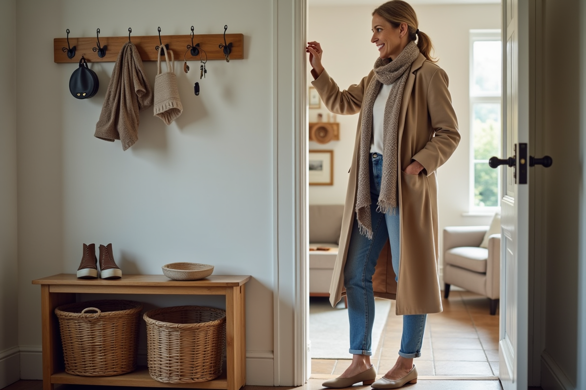 Un autre piège classique : vouloir trop en faire côté rangements. Un meuble à chaussures trop imposant ou un portemanteau surchargé étouffent vite l’ambiance et rendent les allées et venues laborieuses. Pour un rangement d’entrée discret et efficace, mieux vaut opter pour des patères bien alignées, une assise intégrée ou des niches discrètes. L’objectif n’est jamais d’accumuler, mais de trouver le juste équilibre entre utilité et légèreté visuelle.
